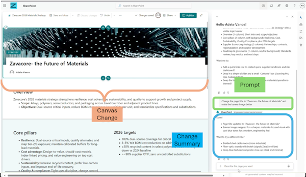 Create and edit SharePoint pages with Copilot-powered AI